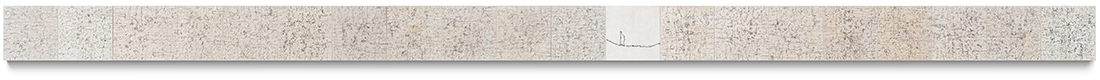Weltnotiz | 15 x 300 x 6 cm, 2021, Acryl, Japanpapier, Zeichnung und Faden genäht auf Holzkörper